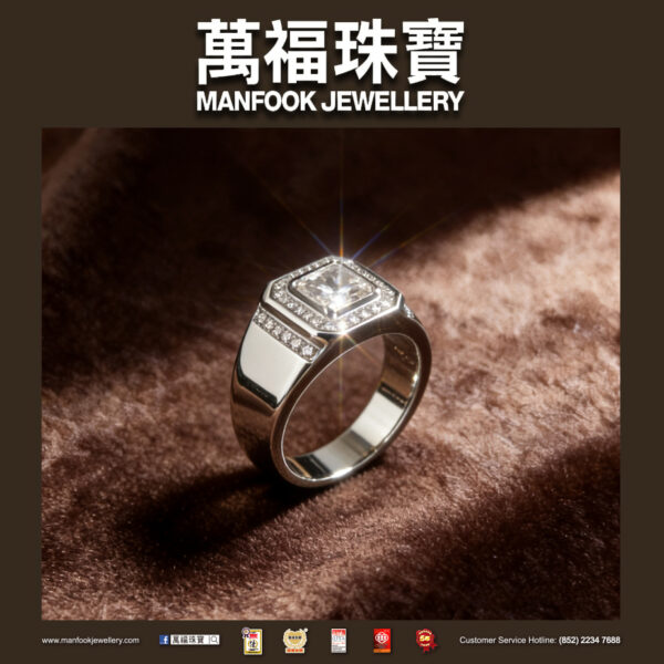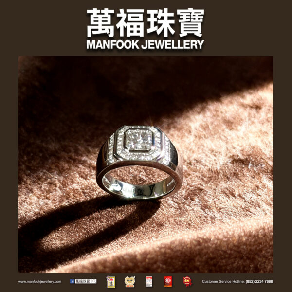 The 18K white gold diamond ring features a clean cut that exudes brilliance. Exquisite craftsmanship outlines the smooth lines of the ring, while meticulous polishing creates a curve that fits the fingertip perfectly. The detailed carving showcases a luxurious style unique to gentlemen.