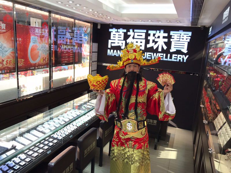 2018年2月19日 – 大年初四,財神駕到萬福珠寶各分店!當天財神親自派出超過1,000封利是、其中獎賞高達港幣 $200,000 !期間更即席揮筆為客人送上賀年揮春,更有不少朋友爭相與財神合照留念,令現場氣氛非常熱鬧!