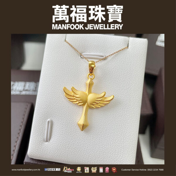 有著一雙可愛翅膀的硬金吊墜,有著自由的象徵意義,運用了磨砂的工藝,特顯出硬金的質感,同時也令佩戴者展現出迷人的氣質。