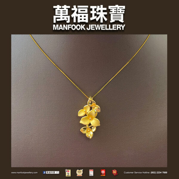 這款足金吊墜以美麗的花朵為造型,運用拋光與噴砂工藝的互相配合,營造出優美的質感,讓人愛不釋手。