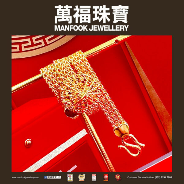 以獨特工藝打造而成的足金手鏈,運用鏤空的視覺效果,配合拋光營造出閃亮秀麗的迷人光芒,讓佩戴者展現出醉人的氣質。