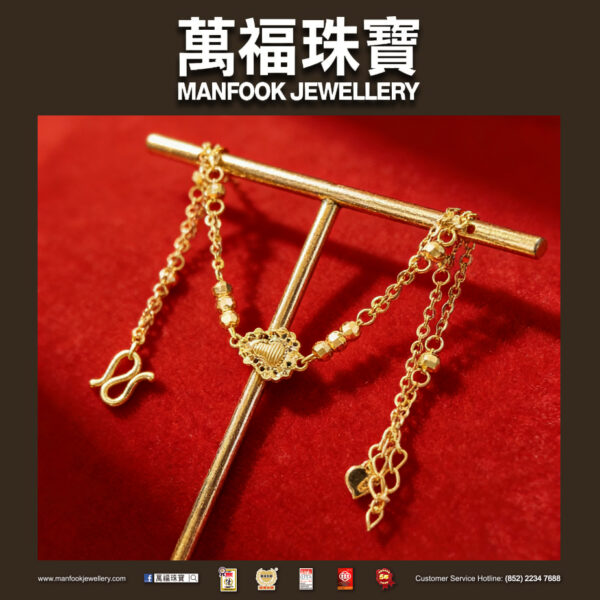 這條足金手鏈的花紋裝飾牌很吸睛,串著的小珠子透著細膩光澤,一側的心形掛飾藏了點甜意,細節里的巧思讓整體更顯靈動,日常出門或是輕裝赴約,都能襯出恰到好處的溫柔氣質。
