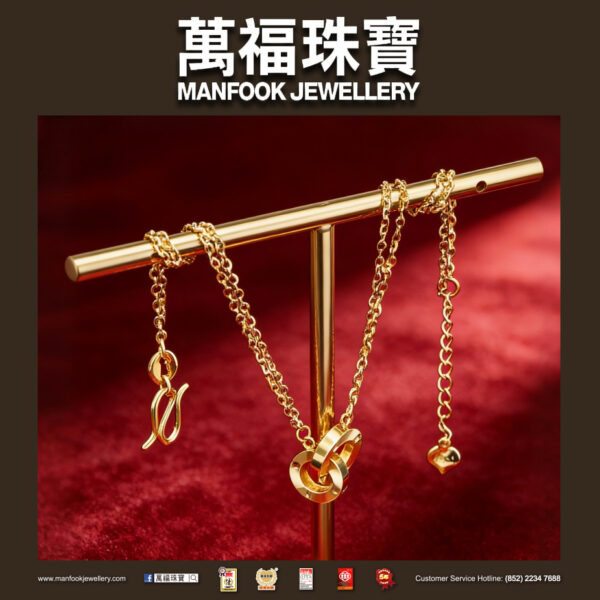 心形結金鏈綴著輕巧墜飾,疊鏈纏出柔潤紋路。搭腕間顯柔緩韻致,垂落時露細碎亮澤,輕貼袖邊都浸著暖金輕透,晃動搖曳便漫開靈動感。