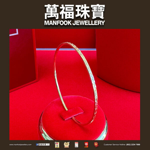 以新穎的設計打造出的碎冰冰足金手鐲,在光線之下折射出閃亮的光芒,更是讓佩戴者展現出時尚迷人的氣質。