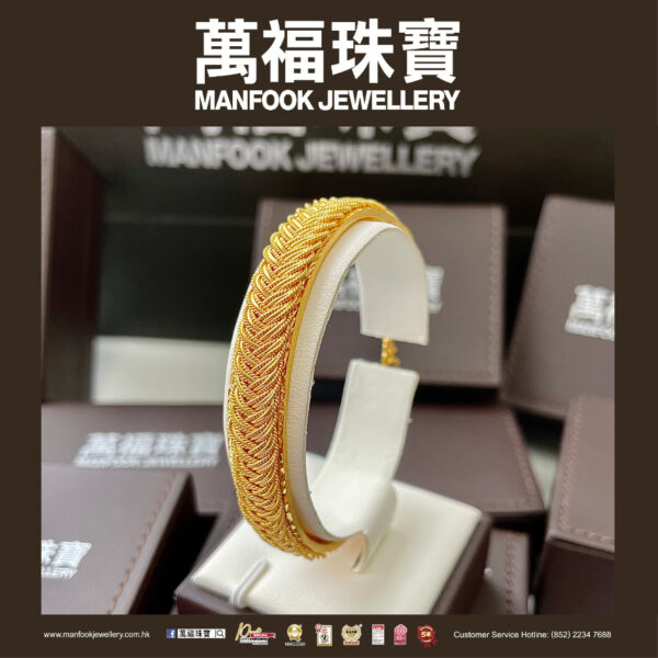 這款足金手鐲,造型猶如編織出來的繩子,透露著獨特的氣質,讓人愛不釋手、一見傾心。