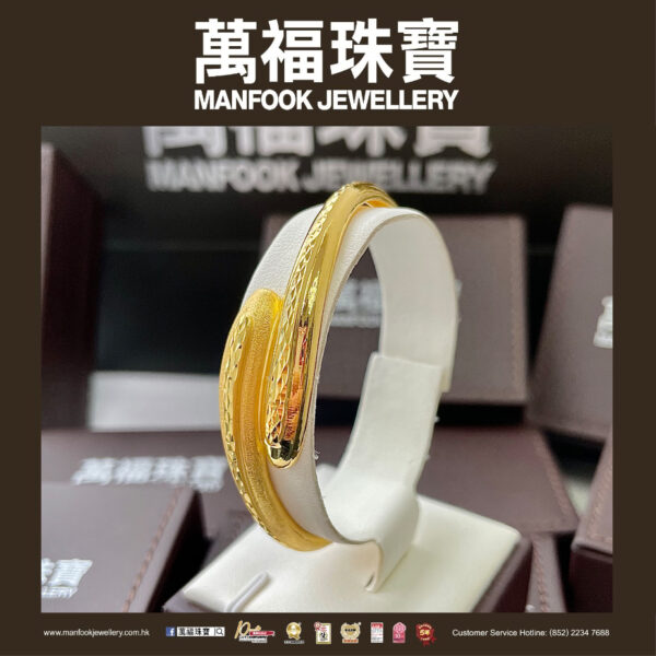 這款足金手鐲造型簡約但不失別緻,有著圓潤的手感,配以不同的工藝,帶出手鐲獨特的氣質,更讓佩戴者展現出雍容華貴的風格。