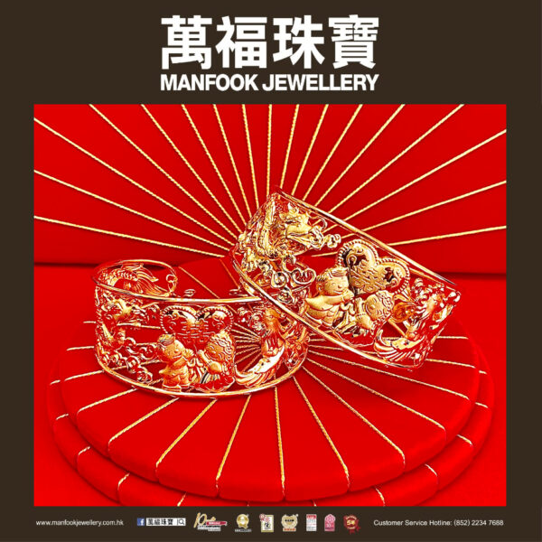 龍鳳手鐲在中式婚禮中必不可少,而這款龍鳳手鐲還加入了時尚活潑的元素,更受年輕人的喜歡,同時也襯托出新娘的雍容華貴。