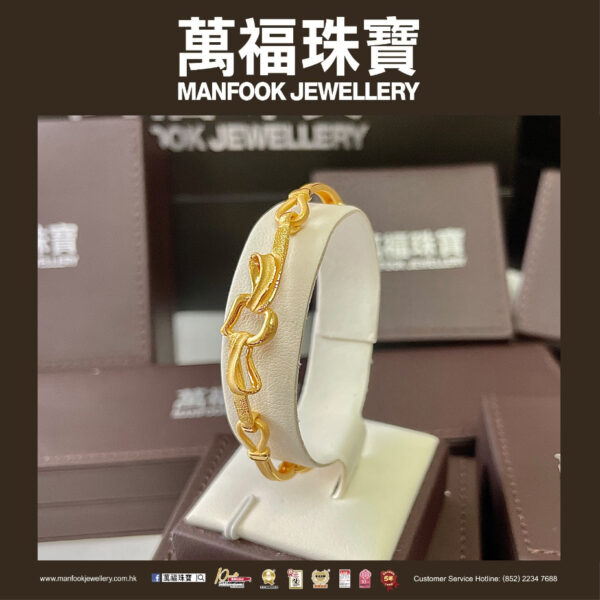 這款足金手鐲以絲帶為造型,運用精雕細琢的技巧,把柔軟絲滑的感覺展現出來,同時也展現出秀麗雅致的迷人氣質。