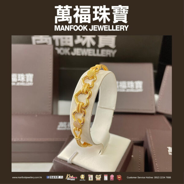 以排列的心形組成的足金手鐲,讓人有一種充滿愛意的感覺,再配以噴砂和拋光的技巧,特顯出層次感,讓人佩戴在手上,透露出獨特的醉人風格。