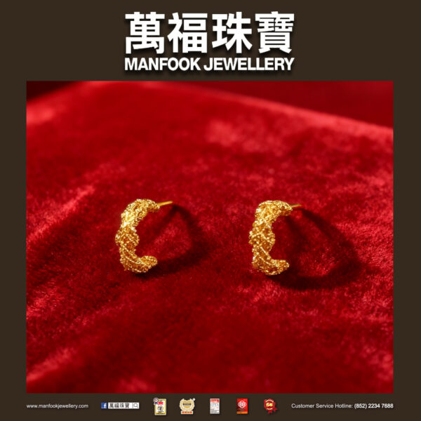 扭絞金紋勾勒C型半環輪廓,凹凸紋路凝住暖潤金芒,小巧半圈自帶復古格調,輕戴耳畔便襯出不費力的高級韻味。