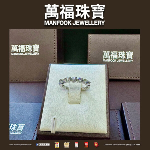 造型特別的一款18K白色金戒指,鑲嵌著多顆耀眼閃鑽,在光線之下散發出奪目的光芒,令人過目不忘。