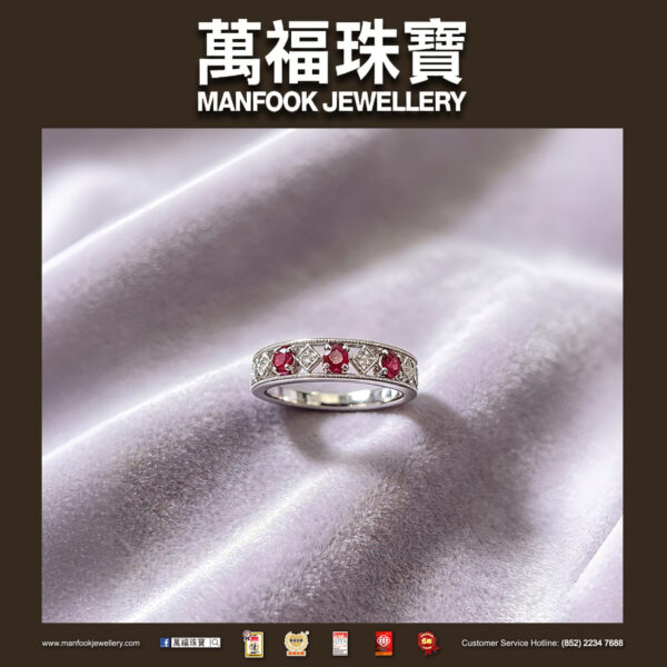 由紅寶石與鑽石相間鑲嵌而成的18K白色金戒指,特顯出典雅秀麗的迷人氣質,散發出鮮艷的色彩和獨特的光澤,讓人過目不忘。