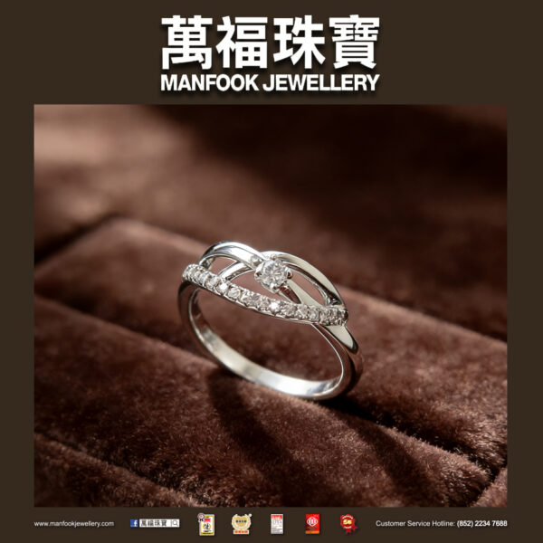 以獨特的造型,配以多顆閃亮美鑽的18K白色金戒指,散發出耀眼奪目的光芒,讓人愛不釋手。