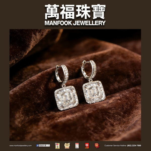18K白金勾勒利落方型輪廓,梯方鑽滿鑲鋪就璀璨光感,滿鑽耳扣襯出精緻格調,輕晃間便漾開靈動光澤,為耳畔添上不張揚的優雅貴氣。