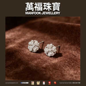 清冷白金色調雕琢靈動花型,梯方鑽與圓鑽交織滿溢光采,精巧設計輕貼耳畔,藏住日常里不張揚的溫柔與精緻格調。