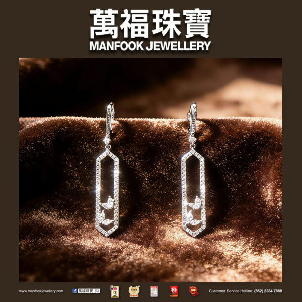 清冷白金色調勾勒利落長框輪廓,滿鑲碎鑽鋪就璀璨光感,蝶葉造型靜立縷空方寸間,光影流轉間便漾開雅致格調,為耳畔添上溫柔又自帶仙氣的氛圍感。