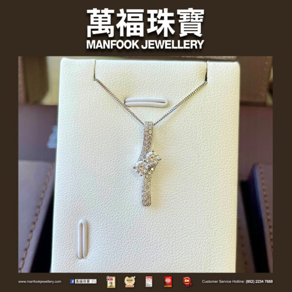 這款18K白色金項鏈,以絲帶為設計靈感,把那優美的線條以閃亮美鑽表達出來,令人一見傾心。