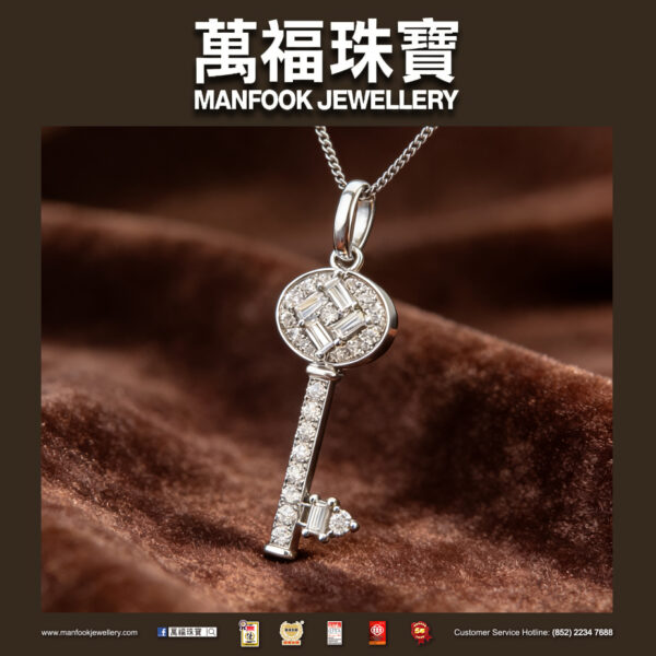 這是一把鑲滿了閃亮美鑽的鑰匙,猶如打開心扉的神秘鑰匙,寓意著佩戴者愛情順利、甜蜜幸福,令人愛不釋手。