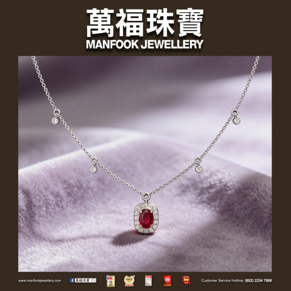 清透冷白的細鏈之上,一顆濃郁紅寶居於中央,圍鑲的閃鑽勾勒亮眼輪廓,鏈身錯落的小鑽隨步履輕搖,為頸間暈開溫柔靈動又自帶精緻格調的清冷氛圍感。