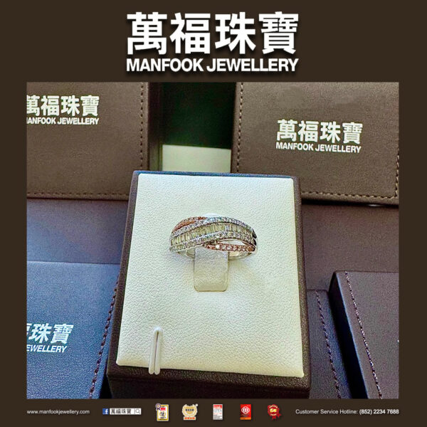以優美的曲線結合白色金與紅色金的色澤,再與鑲嵌著滿滿的閃亮美鑽互相輝映,讓佩戴者展現出時尚秀麗的迷人氣質。