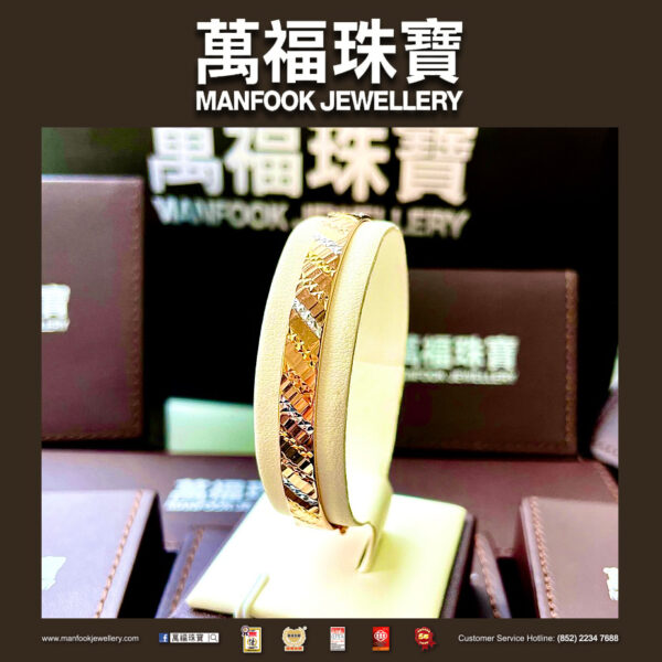 這款簡約獨特的18K雙色金手鐲,於黃色金中鑲嵌著白色金,襯托出不一樣的氣質與風格,令人一見傾心。