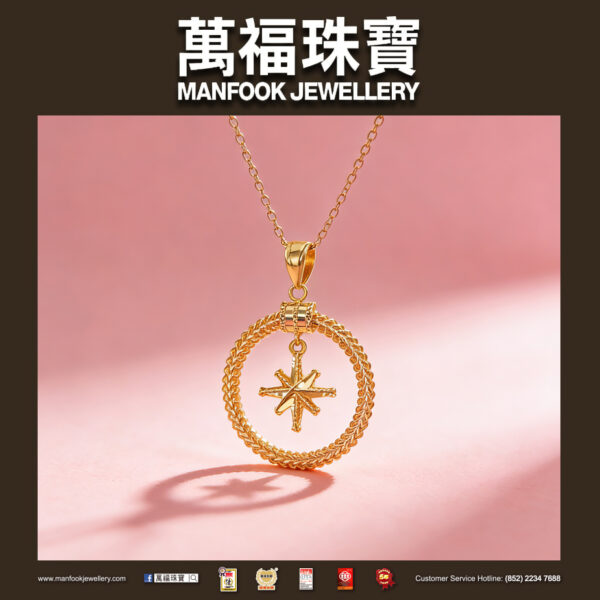 這款18K黃色金吊墜,造型大氣優美,以星星為主題,猶如把天上的星星佩戴於脖子上,令人過目不忘。