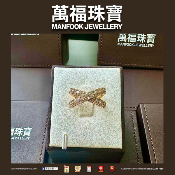 由兩圈交叉重疊而成的18K黃色金鑽石戒指,透露著時尚大方的醉人風格,更是散發出耀眼的光芒,讓人一見傾心。