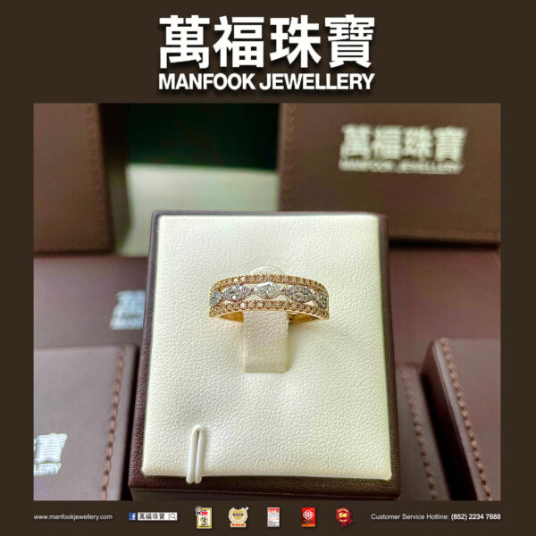 鑲滿了閃亮美鑽的一款18K黃色金戒指,以雍容華貴的設計,配合鑽石散發出的耀眼迷人的光芒,讓人目不暇給。